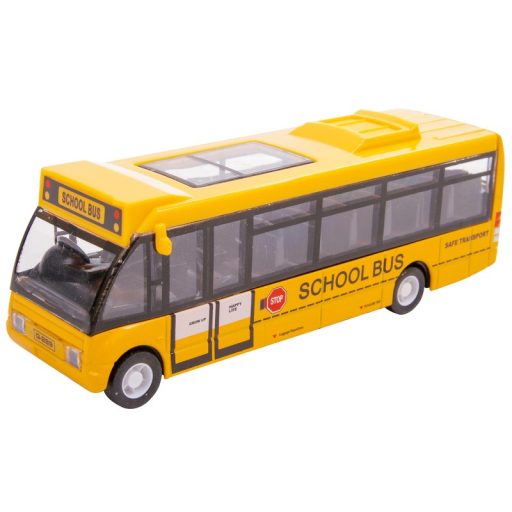 A műanyag iskolabusz egy modern, az eredeti járműre hasonlító utasszállító játék, amelyet valósághű kialakítás és strapabíró műanyag borítás jellemez. A busz fém tengelyekkel van felszerelve, így gördülékenyen gurul és kiválóan illeszkedik bármilyen játékkészlethez.
