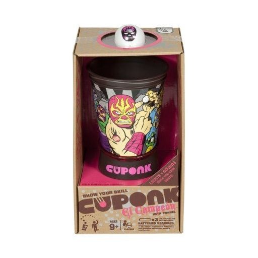A játék tartalma: 1 db Cuponk pohár, 2 db Cuponk labda, 30 lap kártya, 1 db tölcsér, játékleírás. A játék 3 db 1,5 V "AAA" elemmel működik, ami nem tartozék.