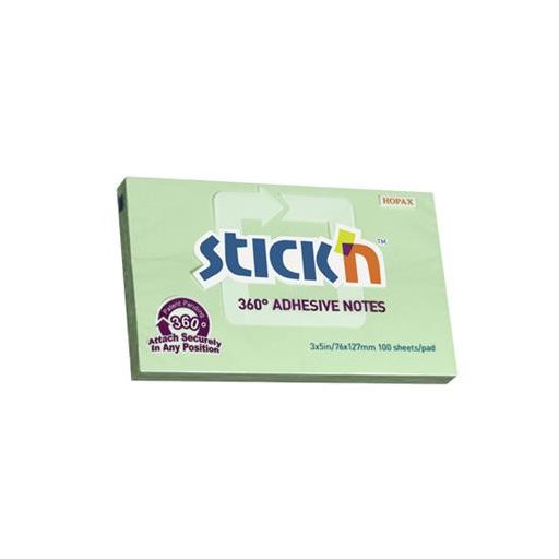 Öntapadó jegyzettömb, 76x127 mm, 100 lap, STICK N, zöld