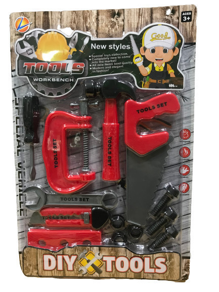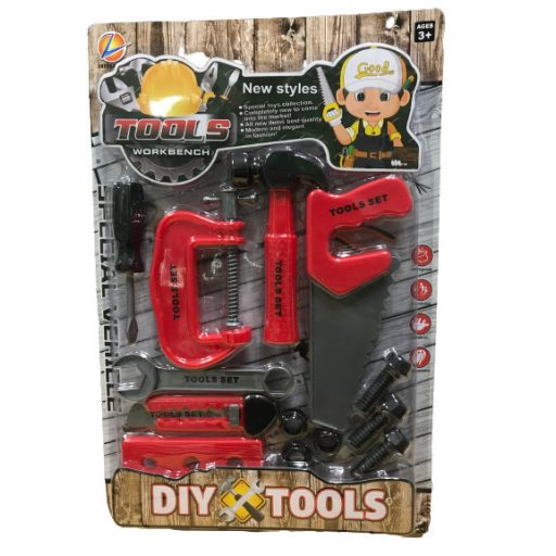 A készlet tartalmaz fűrészt, sniccert, kulcsot, kalapácsot, csavarhúzót, csavarokat és más hasznos eszközt. A szerszámokkal való játék javítja a gyerekek motorikus képességeit, türelmet tanulnak és közben jókat szórakoznak.