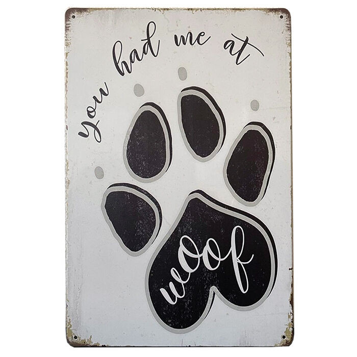 1 x „You Had Me at Woof” feliratú fémtábla (20x30 cm)